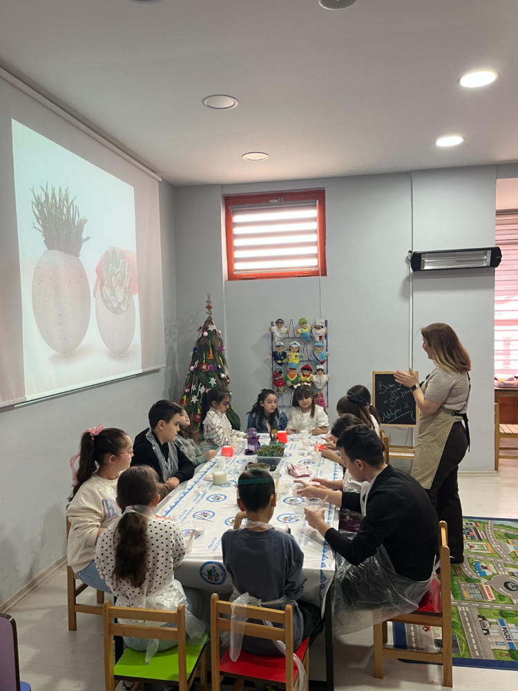 Kendi saksılarını tasarlayıp bitkilerini diken çocuklar, eğlenerek öğrenmenin mutluluğunu yaşadı. Etkinliğin sonunda çocuklara katılım belgeleri ve yaşayan kalemler hediye edildi; hatıra fotoğrafı çekiminin ardından atölye sona erdi.
