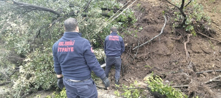 Olay, Ereğli Alaplı Karayolu Ereğli istikametinde meydana geldi. Alınan bilgilere göre, yağmur yağışı sonrasında Alaplı Ereğli karayolu arasında heyelan meydana geldi. İhbar üzerine olay yerine giden İtfaiye ekipleri ve trafik polisleri yolun temizlenmesi için çalışma başlattı. İtfaiye ve Trafik polislerinin kısa süren çalışmanın ardından yol yeniden trafiğe açıldı.