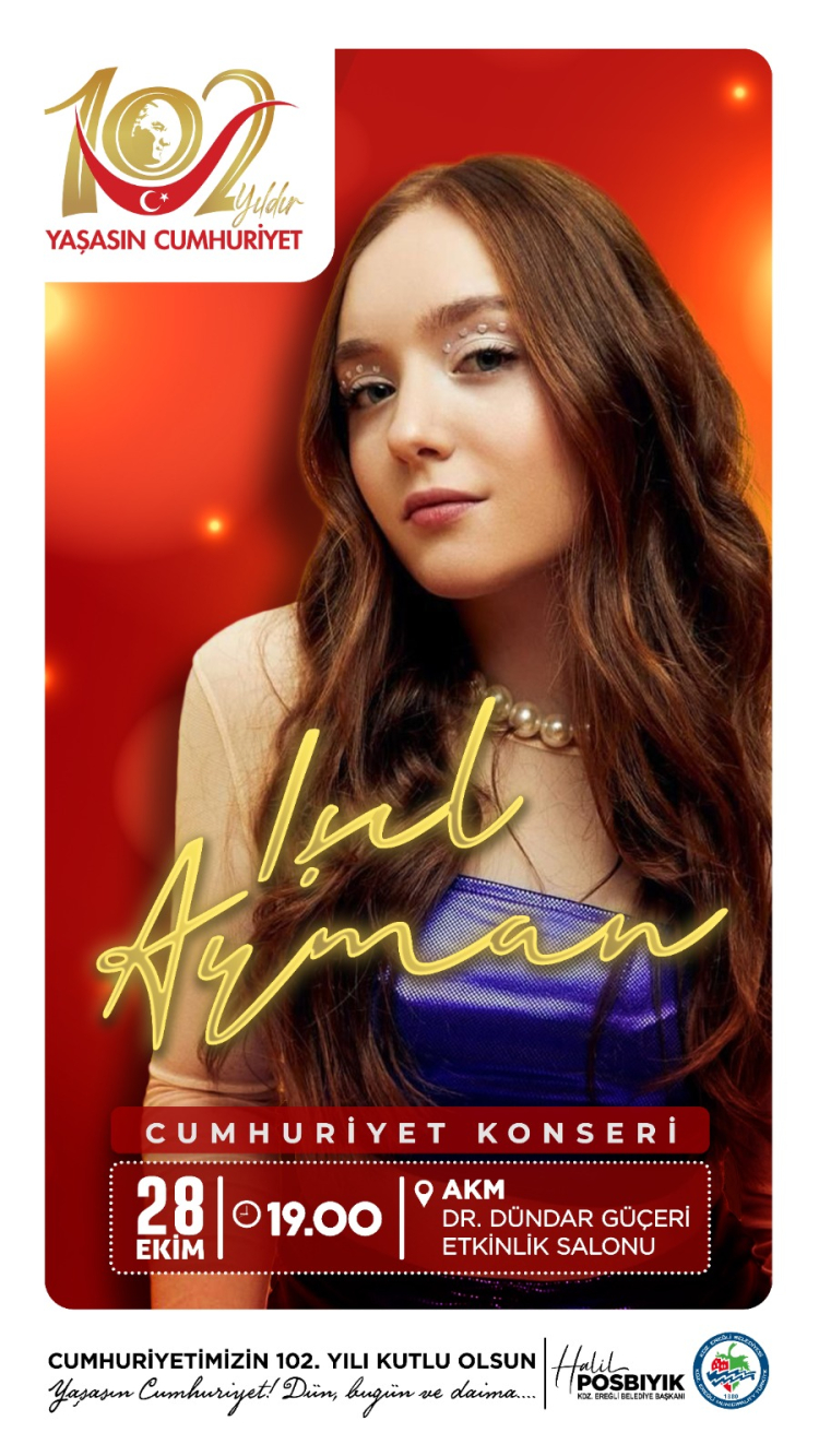 Cumhuriyet’in 102. yılı kutlamaları kapsamında ünlü sanatçı Işıl Ayman, Zonguldak’ın Ereğli ilçesinde sahne alacak.
