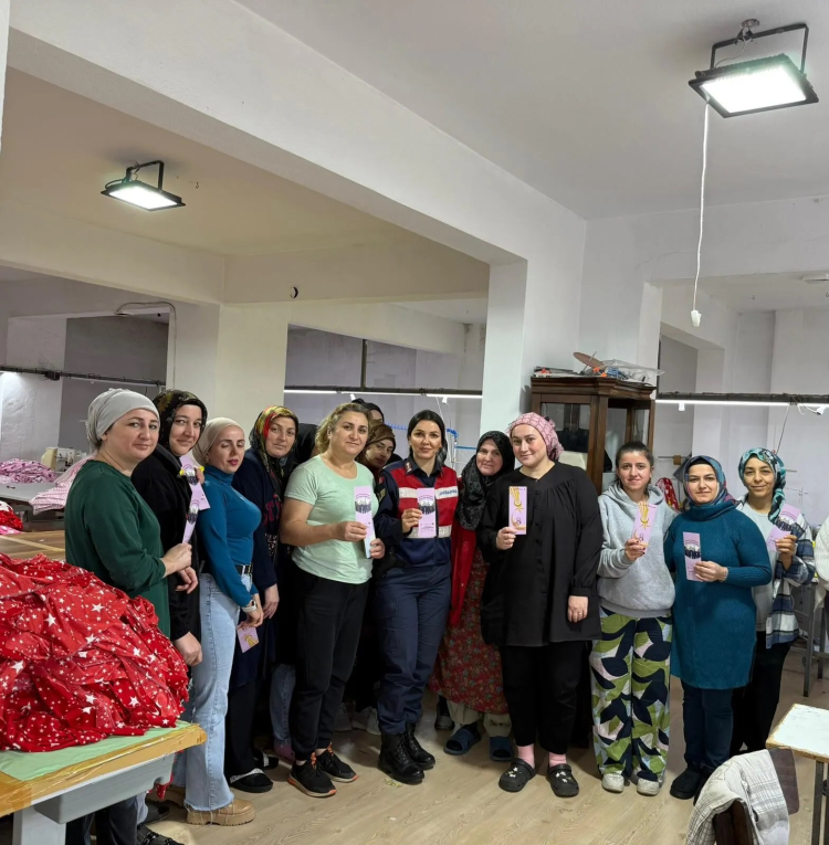 Aynı gün Kızılca Jandarma Karakol Komutanlığı ile müşterek yürütülen bir diğer faaliyette, köydeki tekstil atölyesinde çalışan 30 kadın vatandaşa da aynı konularda bilgilendirme gerçekleştirildi.