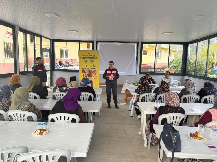 Karadeniz Ereğli Jandarma, kadına yönelik şiddetin önlenmesi için bilgilendirme çalışmaları yapıyor. Hasbeyler Köyü'nde 30 kadına şiddetle mücadele bilgisi verildi ve KADES tanıtıldı. Etkinlikte 20 erkek vatandaşa da bilgilendirici broşür dağıtıldı.