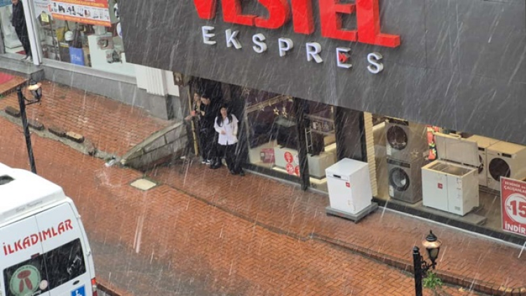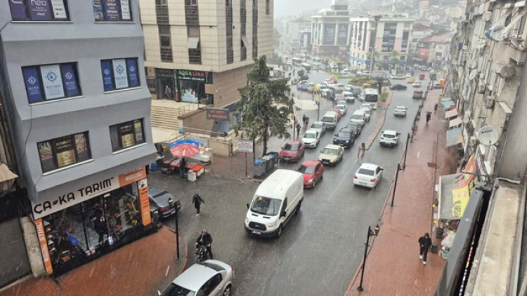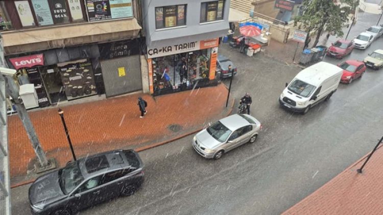 Karadeniz Ereğli’de aniden bastıran sağanak yağmur, yayalar ve motor sürücülerine zor anlar yaşattı. Yayalar, yağmurdan korunmak için kapalı alanlara sığınırken motosiklet sürücüleri yolda kalmaya devam etti. O anlar kameraya yansıdı.
