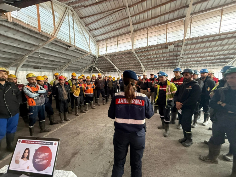 Karadeniz Ereğli Jandarma, Ermaden Kömür İşletmesi'nde kadına şiddetin önlenmesi ile ilgili farkındalık etkinliği düzenleyerek "Kadına El Kal-Ka-Maz!" videosu izlettirdi ve broşür dağıttı. Madenciler bilgilendirme için teşekkür etti.
