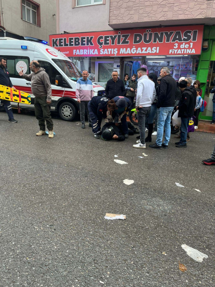 Karadeniz Ereğli'de Müftü Mahallesi'nde bir motosiklet karşıya geçmek isteyen yayaya çarpmamak için devrildi, sürücü yaralandı ve hastaneye kaldırıldı. Olayla ilgili soruşturma başlatıldı.