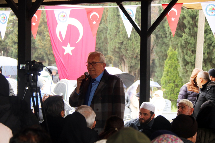 “Hepinize hoş geldiniz diyorum. 27 senedir Allah sağlık verdiği müddetçe hiç aralık vermeksizin bu geleneğimizi sürdürüyoruz. En büyük destekçimiz İlçe Müftülüğümüz ve kıymetli hocalarımız. Tayfun beye ve ekibine teşekkür ediyorum. Biz ölüsüne sahip çıkmayan, dirisine zaten sahip çıkmaz anlayışıyla çalışıyoruz. Mezarlıklarımızda yaptığımız çalışmalarla iftihar ediyoruz. Yeni Belen Şehir mezarlığını da açtık. 100 dönüm yer. Kurallar çerçevesinde definlere başladık. Mübarek Ramazan ayının sonuna geldik. Allah tuttuğunuz oruçları, kıldığınız namazları kabul etsin. Yarın bayramın ilk günü tüm hemşehrilerimin bayramı kutlu olsun. Allah inşallah bir dahaki bayramlarda hep beraber burada olmayı nasip, birlikte hocalarımızı dinlemeyi ve dua etmeyi etsin. Geçmişlerimizin ruhlarına buradan dualarımızı gönderdik Allah kabul etsin. Hayırlı bayramlar diliyorum.”