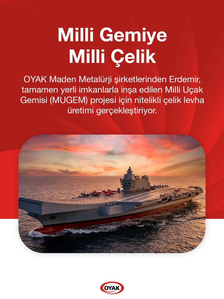 OYAK Maden Metalürji, Milli Uçak Gemisi'nin çeliğinin Erdemir'den karşılanacağını duyurdu.