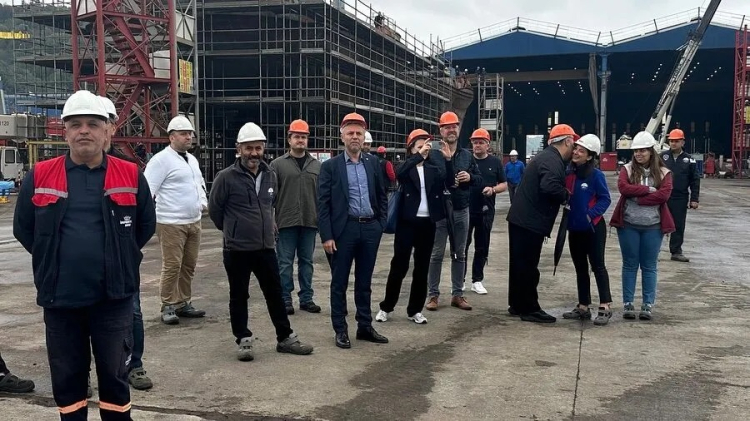 Sonrasında Tersaneler Bölgesi’ne giderek bölgede faaliyet gösteren Ereğli Gemi Tersanesi’ni ziyaret eden delegasyon, firmanın üretim alanları ve kapasitesi hakkında yetkililerinden bilgiler edindi.