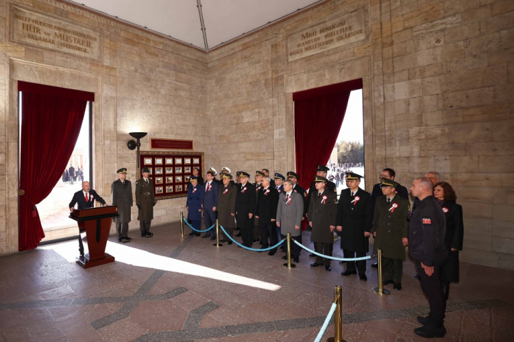 Çelenk bırakılmasının ardından saygı duruşunda bulunuldu. Saygı duruşunun sonrasında Misak-ı Milli Kulesi’ne geçen heyet, Anıtkabir merdivenlerinde hatıra fotoğrafı çektirdi.