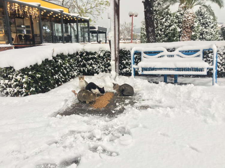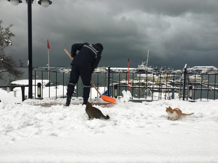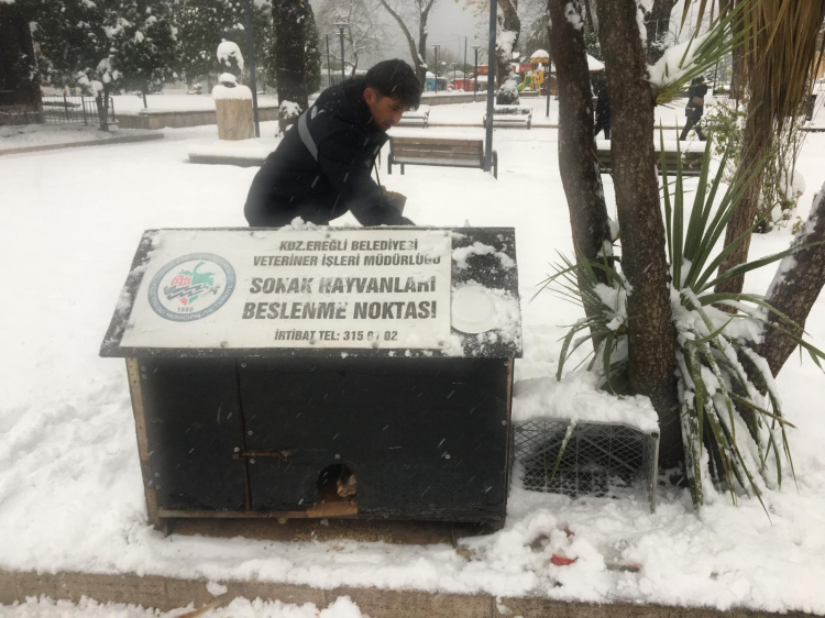 Kdz. Ereğli Belediyesi Veteriner İşleri Müdürlüğü, soğuk havada sokaktaki canları unutmadı. Kar yağışı nedeniyle yiyecek bulmakta zorlanan sokak hayvanları ve kanatlılar için cadde ve sokaklara mama ve yiyecek bırakıldı, barakaları kardan temizlendi.