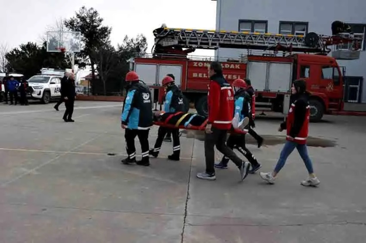 Zonguldak Atatürk Anadolu Lisesi'nde 1-7 Mart Deprem Haftası kapsamında UMKE, 112, AFAD ve itfaiye ekiplerinin katılımıyla deprem ve yangın tatbikatı yapıldı. Tatbikatta mahsur kalan yaralı ve öğrenci kurtarıldı.