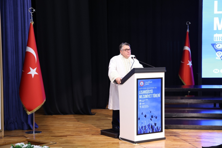 “Konuşmama başlamadan önce ebediyete irtihalinin 87. yıl dönümünde Cumhuriyetimizin banisi Gazi Mustafa Kemal Atatürk’ü huzurlarınızda saygıyla, rahmetle ve minnetle yâd ediyorum. Üniversitemiz 2024-2025 Akademik Yılı Mezuniyet Töreni’nde, sizlerle bir arada olmanın bahtiyarlığını ve gururunu yaşıyorum. Buharalı bilim ve düşünce insanı İbni Sina’nın, “Bilim ve sanat takdir edilmediği yerden göç eder.” sözü, bugün burada bir araya gelişimizin anlamını en güzel şekilde özetlemektedir. Zira bizler, bilimi ve sanatı yücelten; bilgiye, emeğe ve başarıya değer veren bir anlayışın temsilcileriyiz. Mezunlarımızın başarıları da bu anlayışın en kıymetli meyvesidir. Üniversitemiz; 101 yıl önce Zonguldak Yüksek Maden Mühendis Mektebi adı ile kapısını dünyaya açmıştır. Mühendislik eğitimi ile ülkemizin kalkınmasına öncü olmuş ve 110 binden fazla nitelikli mezunu ile ülkemizin yarınlarına damga vurmuştur. Bugün ise, sunduğu eğitim yelpazesini genişleterek sağlıktan eğitime, sanattan spora tüm alanlarda, ülkesine ve insanlığa layıkıyla hizmet edecek bireyleri yetiştirmeye emin adımlarla devam ediyoruz. Bu düsturun bilincinde bugün lisansüstü eğitimini tamamlayan alanının uzmanları olan değerli mezunlarımızı bilim dünyasına kazandırmanın kıvancını yaşıyoruz. Sözlerime son vermeden önce öğrencilerimizin bu gurur dolu başarılarının en büyük mimarlarından biri olan ailelerimize, mezunlarımızı en güzel şekilde geleceğe kazandıran değerli hocalarımıza ve danışmanlarına teşekkür ediyorum. Tüm mezunlarımızı en kalbî duygularımla tebrik ediyor, başarılarının daim olmasını temenni ediyorum.”