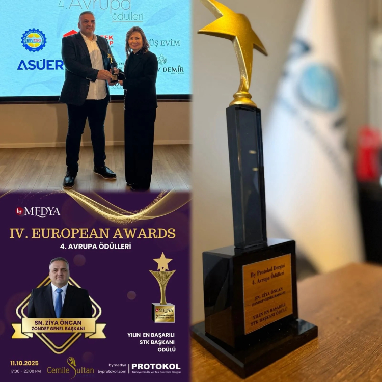 Zonguldak Dernekleri Federasyonu (ZONDEF) Genel Başkanı Ziya Öncan, By Protokol Dergisi tarafından düzenlenen prestijli European Awards 4. Avrupa Ödülleri’nde “Yılın En Başarılı STK Başkanı” ödülüne layık görüldü.