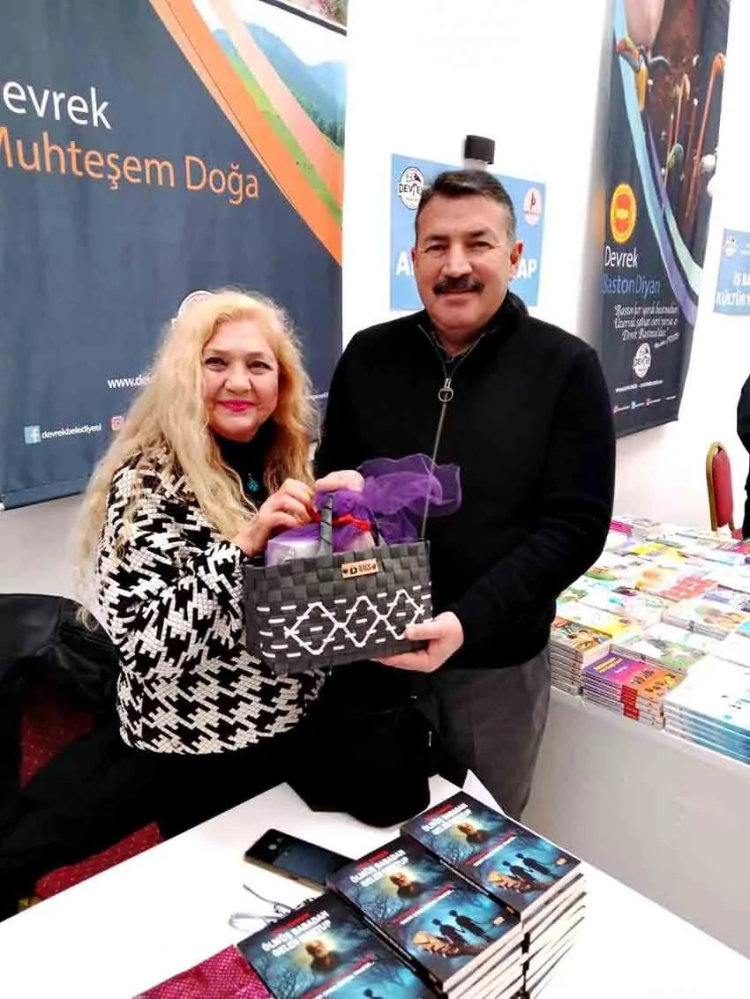 Devrek'te düzenlenen kitap fuarında yazar ve şairler eserlerini imzalarken Kaymakam Onur Alp Bıçakçı ve Belediye Başkanı Özcan Ulupınar da fuarı ziyaret etti. Yazarlar hediyeler alırken Devrekli yazarlar İbrahim Tığ ve diğerleri etkinlikte yer aldı.