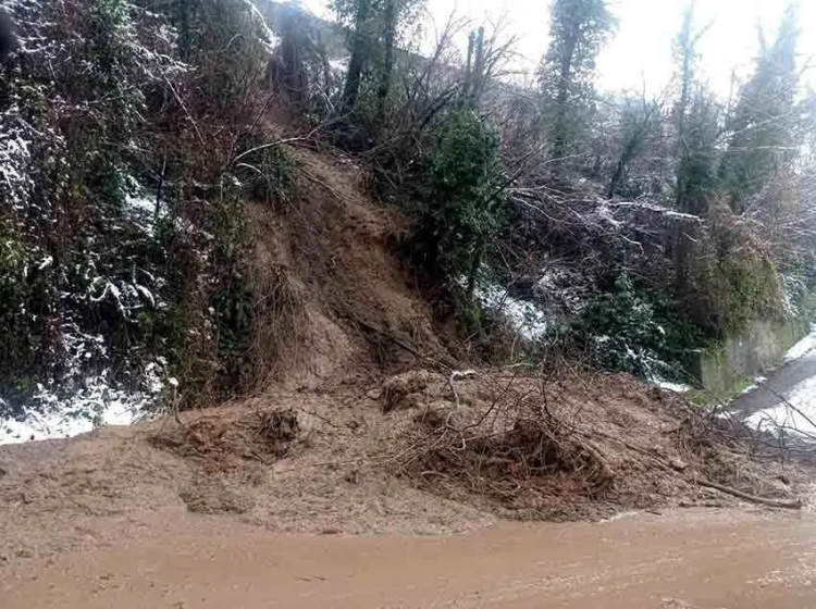 Zonguldak’ın Kozlu ilçesinde gün boyu süren şiddetli yağmur ve yoğun kar yağışı, İhsaniye Mahallesi tünel üstü mevkiinde toprak yapısının gevşemesine yol açtı. Gevşeyen toprak kütlesinin yola kayması sonucu heyelan meydana geldi. Olay sırasında elektrik tellerinin kopması üzerine, yol güvenlik nedeniyle tamamen ulaşıma kapatıldı.
