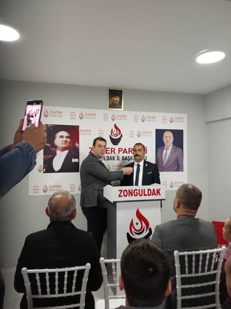 Zonguldak'ta MHP'den istifa eden yaklaşık 50 kişilik grup, Zafer Partisi'ne katıldı. İl Başkanı Oğuzhan Turhan'ın rozet taktığı törende, eski yöneticiler Ersun Yıldız ve Ersin Öztürk de yer aldı. Turhan, partinin Atatürk çizgisinde olduğunu belirtti.