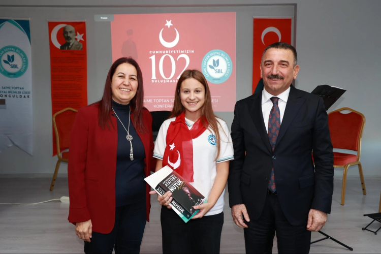 Zonguldak Valisi Osman Hacıbektaşoğlu, Saime Toptan Sosyal Bilimler Lisesi’nde düzenlenen “Cumhuriyet” konulu şiir yarışması sonucunda dereceye giren eserler için gerçekleştirilen ödül törenine katıldı.