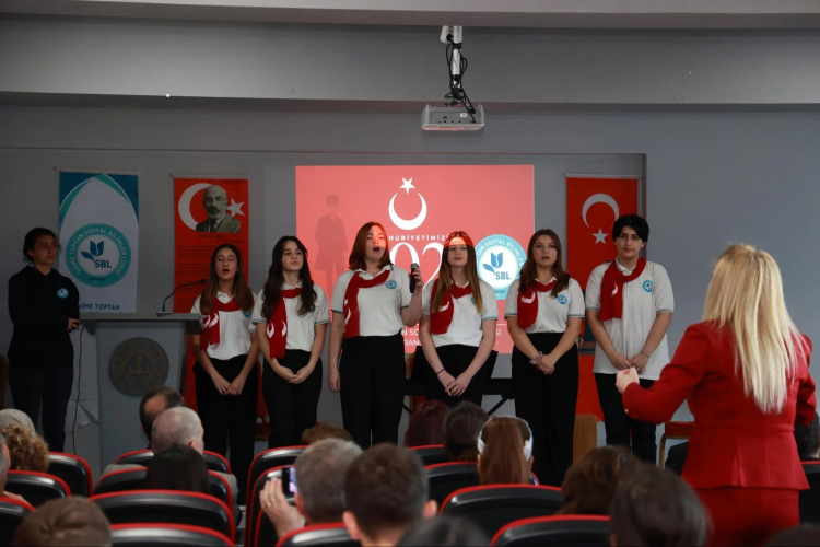 Saime Toptan ise törende yaptığı konuşmada şunları söyledi: “Bu okulda Cumhuriyet sevgisinin sanatla birleştiğini görmek beni çok mutlu etti. Gençlerimiz, Cumhuriyet’in ışığını geleceğe taşıyacak”