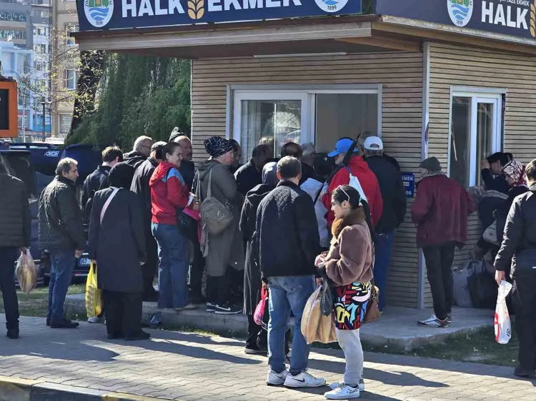 Evine ekmek götürmek isteyen vatandaşlar sabahın erken saatlerinden itibaren halk ekmek büfeleri önünde sıraya girdi. Yoğunluk zaman zaman izdihama dönüştü.