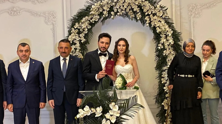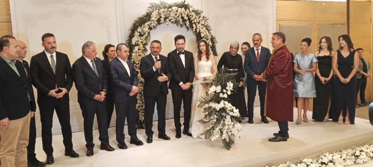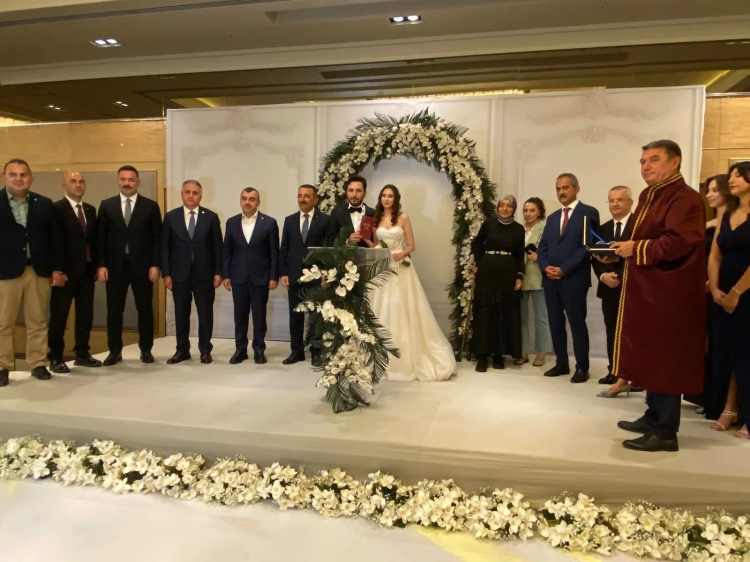 Zonguldak Dedeman Otelde yapılan nikah ve düğün merasiminde genç çiftin nikahlarını Zonguldak Belediyesi Belediye Başkanı Tahsin Erdem kıydı.