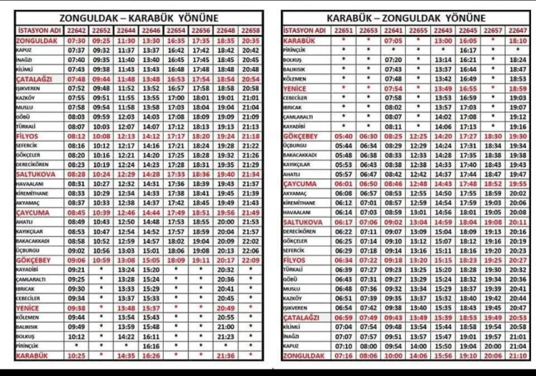 TCDD Zonguldak-Karabük tren seferleri, heyelan nedeniyle duran hizmetin ardından, 8 Kasım Cumartesi tekrar başladı. Güncellenen sefer saatleri duyuruldu. Yolcu trenleri normal tarifesine döndü.