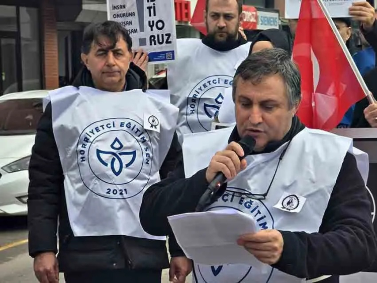 Hürriyet Eğitim Sen, Çekmeköy’de öğretmen Fatma Nur Çelik’in hayatını kaybettiği saldırıyı protesto etmek için Madenci Anıtı önünde basın açıklaması yaptı ve eğitimde güvenlik önlemlerinin artırılmasını talep etti.