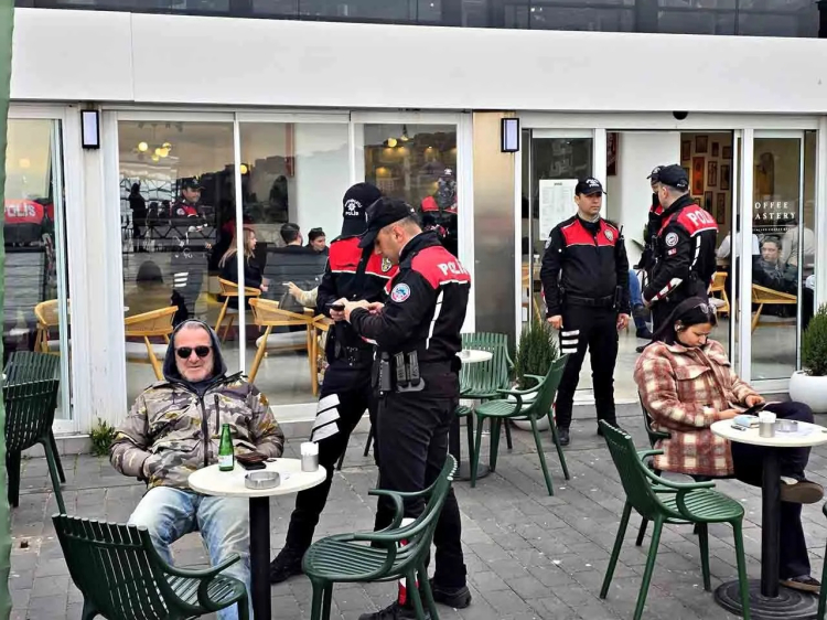 Kent merkezinde bulunan kafe, restoran ve çay bahçelerinde yapılan denetimlerde, müşterilere yönelik kimlik kontrolleri gerçekleştirildi.