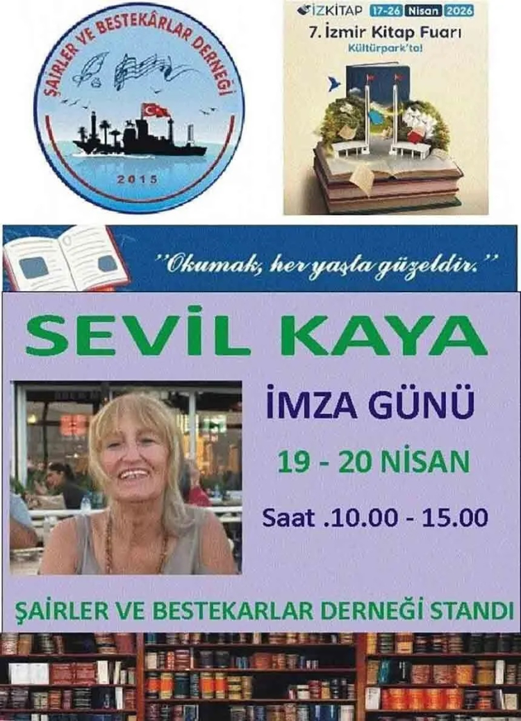 Zonguldaklı şair Sevil Kaya'nın imza günü, 19-20 Nisan'da 7. İzmir Kitap Fuarı'nda (İzmir Kültürpark) 10.00-15.00 saatleri arasında olacak. 7. İzmir Kitap Fuarı 17-26 Nisan'da düzenleniyor.