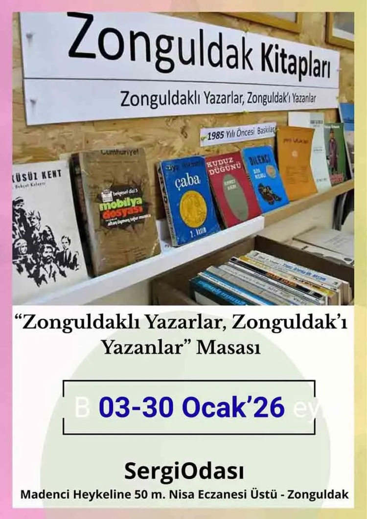 Zübeyde Hanım caddesinde Nisa Eczanesi üstündeki yerinde kitapseverlere hizmet veren kentin tek sahafı durumundaki Sergi Odasından bir süre önce açılan Zonguldak Kitapları masasını şimdiye kadar yüzlerce kitapsever ziyaret etti. Ssöz konusu masa 30 Ocak tarihine kadar açık kalacak.